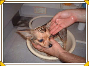 お風呂に入れなくて、パパとママが「龍馬はクチャイ!」って言ってたの。 今日は解禁だからって、初めてパパがお風呂に入れてくれたよ。 初めてで、ちょっと怖くてプルプルしちゃった・・・ でもその後のドライヤーはもっと怖くて嫌だったよ!走って逃げちゃった・・・